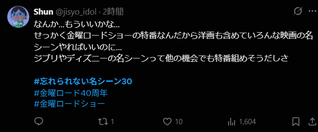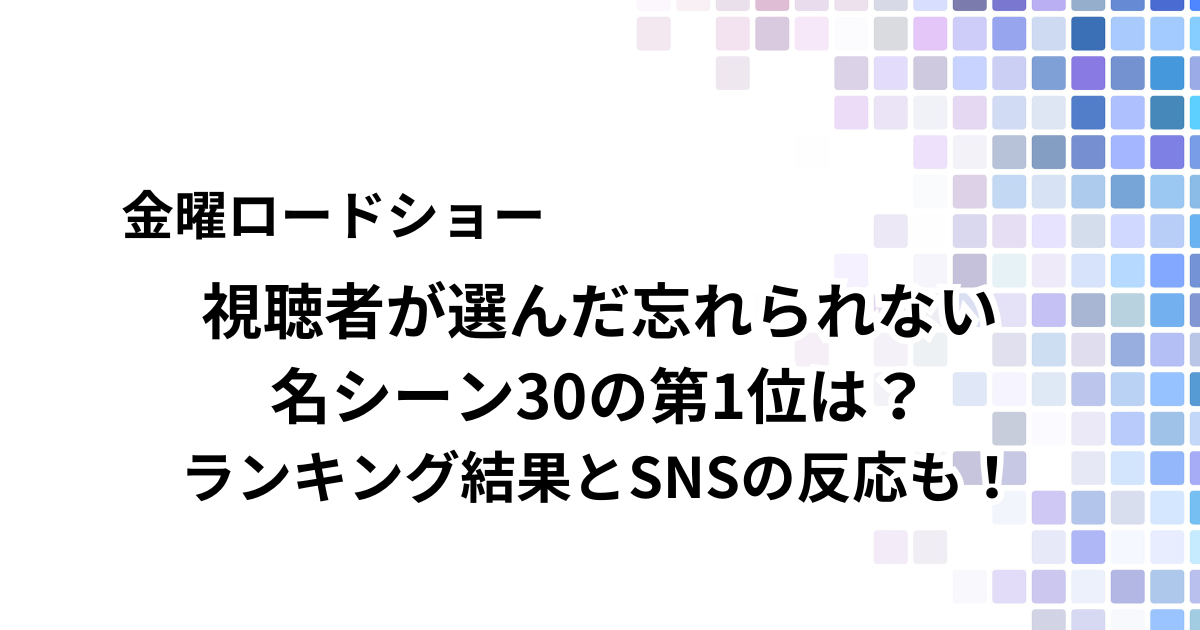 2025年10月3日放送、金曜ロードショー『視聴者が選んだ忘れられない名シーン30』の結果が分かり、SNSの反応が気になりますよね。